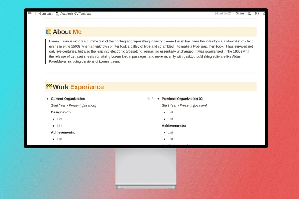 I started my notion journey in 2021 and since then I have been searching for a simple yet effective academic CV template. Finally, I decided to make my own academic CV in notion.
